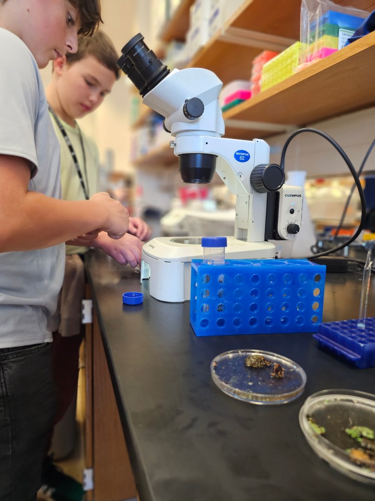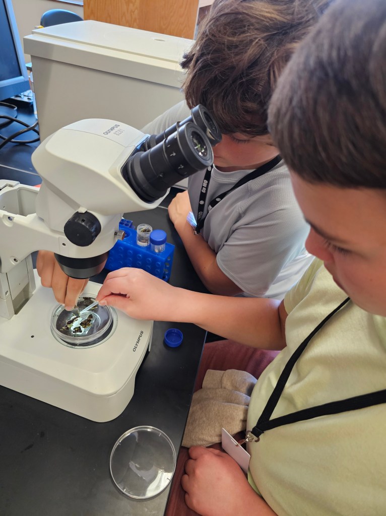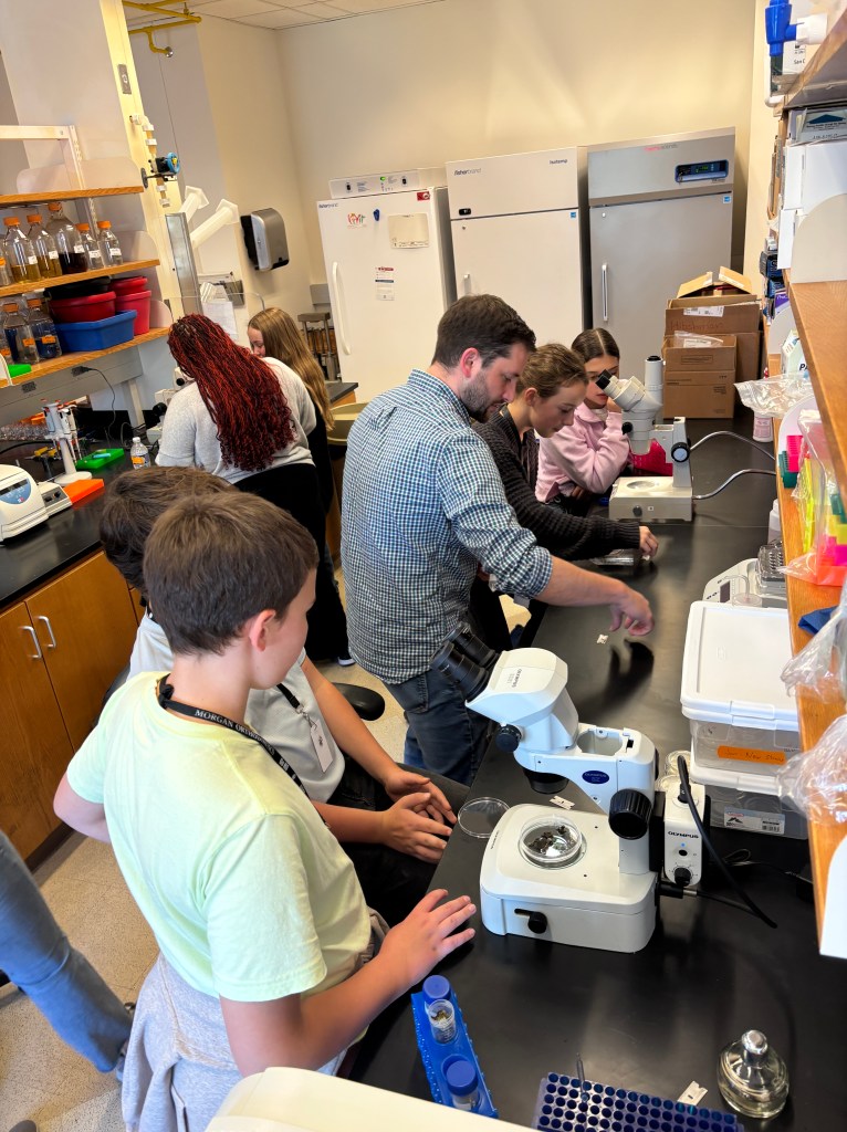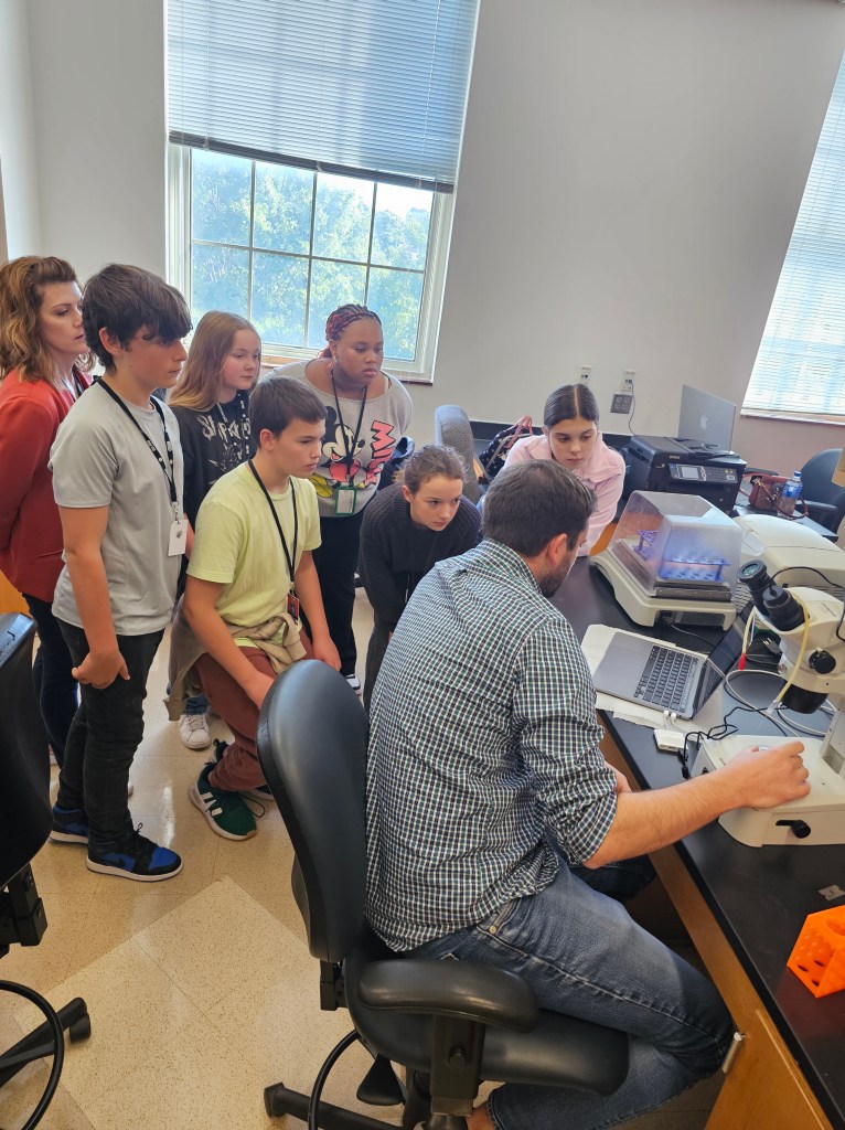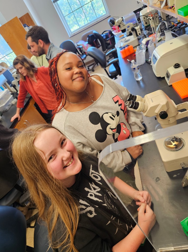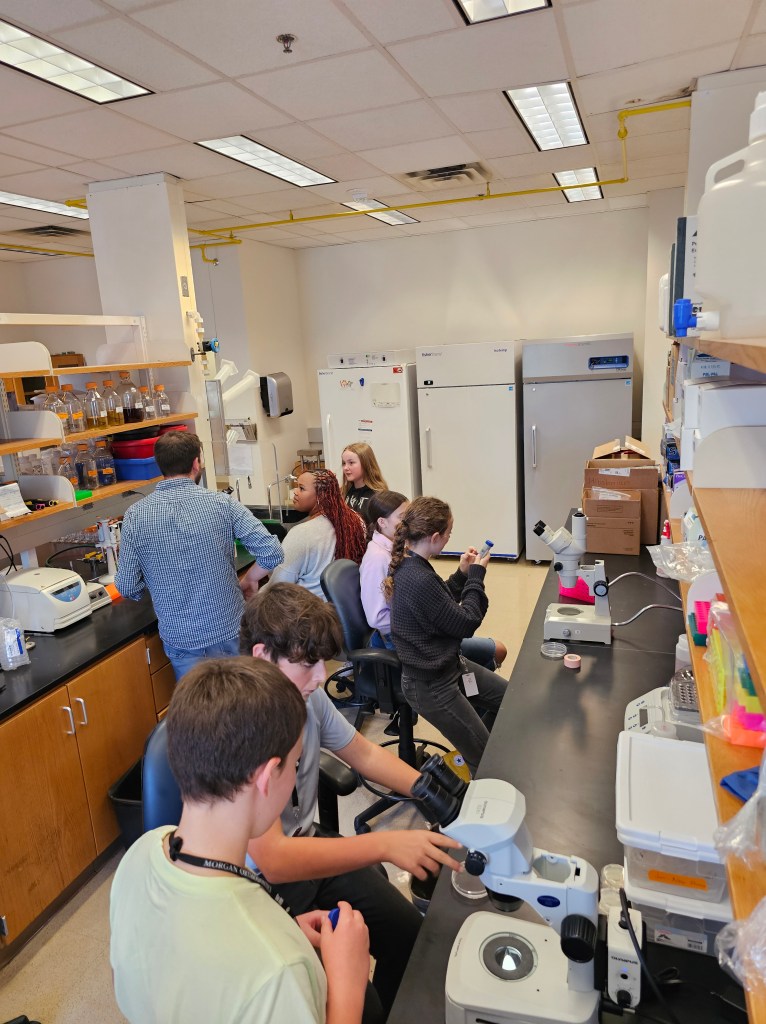 October 23, 2024: 7th graders from Waxahachie came to visit the lab and learn about tardigrades. We went out to hunt for tardigrades around campus and found nematodes and tardigrades in the samples we collected! Thanks to the students and teachers for visiting!